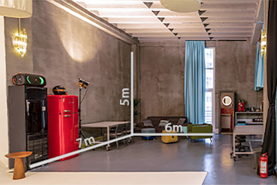 Beton duvar, epoksi zeminli alanımız klip, moda çekimi, ürün çekimi gibi prodüksiyonlarda kullanılabileceği gibi dekor kurulumuna da uygundur.